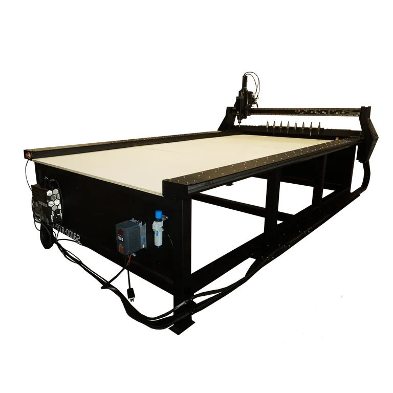 4×8 CNC that can produce parts out of plywood, plastics, non-ferous metals and hardwoods.